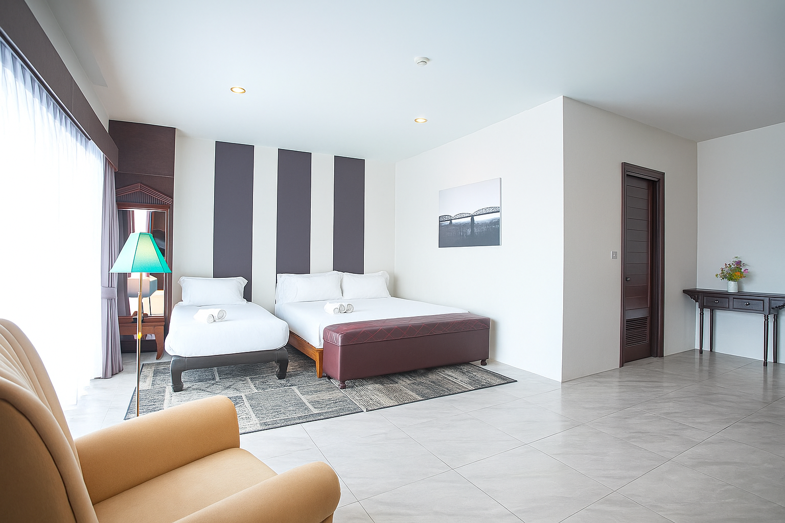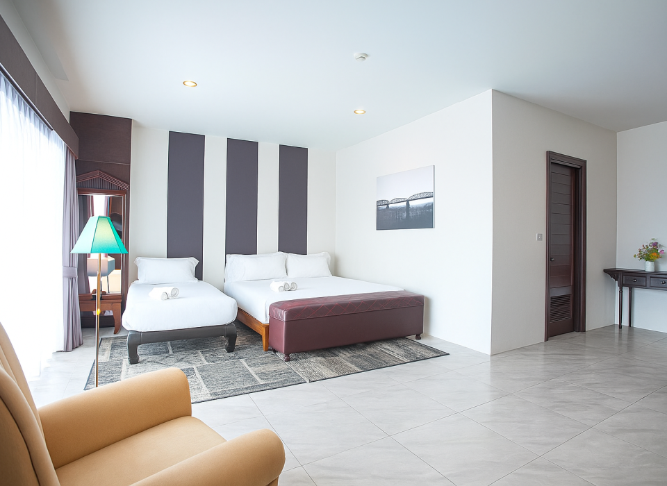 1 เตียงคิงไซส์ (6ft) และ 1 เตียงเดี่ยว (3.5ft)